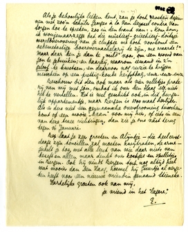 Beschouw dit dan ook maar als vier velletjes praterij van mij met jou, omdat ik over Den Haag eig. niets heb te vertellen. Het is wel geschikt ook, in dit burgerlijk appartementje, maar Bergen is 1000 maal heerlijker. Als er dus niet een germaansche overstrooming tusschen komt of een mooie ‘baan’ voor mij hier, of iets in een van deze twee richtingen, dan zie je ons vàst terug tegen 16 Januari.