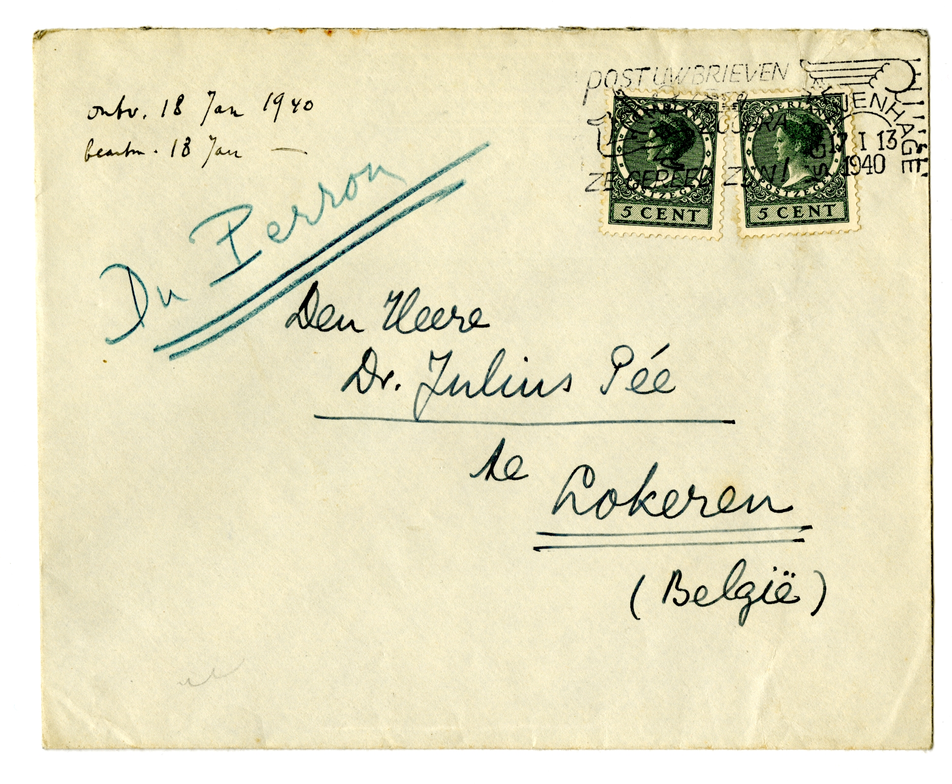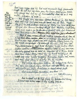 Ingesloten mijn antwoord op het stuk van den heer Van Duinkerken. Dit is maar een voorloopig antwoord. Die menschen weten niet wat ‘waarheid’ is, dus kan je ze met open oogen bedotten, zooals V.D. dan ook doèt. Zijn antwoord (naschrift) zegt op dat punt genoeg. Leest u zelf. In zijn 1e zin staat inderdaad ‘kan dat bewezen worden... dan,’ maar in de 2e blijkt Saks al beter gezien te hebben dan ik, zonder ‘dan’, en in de 3e verliest mijn boek (nog veel meer zonder ‘dan’) goeddeels zijn waarde. - Maar wat zou je dat zitten uitleggen aan diè menschen? De zaak is trouwens nog veel gekker, want als je blz. 84-85 van de lady van Leggeloo erop naslaat, blijkt: