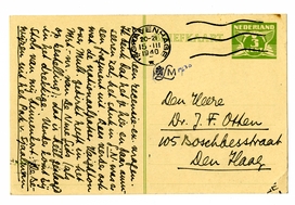 Dank voor je waardeerend briefje. Ik lig op 't oogenblik met griep en vertrek Maandag as. naar Bergen, waar ik misschien ga wonen (als ik een huis vind). Mijn voorloopig adres is: Nesdijk 19, Bergen (N.H.); misschien kan je je stuk over Machiavelli en Multatuli6844 daarheen sturen? Je krijgt het na lezing direct terug. Het herdenkingsart. in '376845 meen ik in Indië gelezen te hebben; is dat hetzelfde waarin je zegt dat Ter Braak's essay over M. zoo'n eenzijdige indruk van hem geeft? (wat nat. waar is, hoewel ook uitstekend zooals het is). - Mijn brochure Mult. en de Luizen (Contact, Amst.) komt Maandag a.s. uit; misschien kun je een recensie-ex. vragen. Ik denk dat het je hier en daar amuseeren zal; het stuk in G.N. was er een fragment uit. Lees verder ook wat de nationaalpatser Haighton over Mult. gedirkt heeft in het Mrt.-nr. van De Nwe Gids (als op bestelling); dat is héél geslaagd in het drekkige. Verder komt bij Stols van mij binnenkort: De Bewijzen uit het Pak v. Sjaalman met hoopen nieuwe documenten. Ziedaar. Beste groeten,