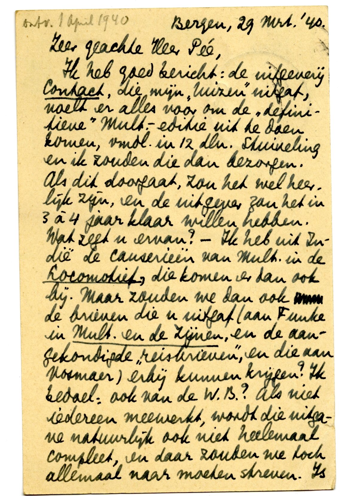 Bergen, 29 Mrt. '40.