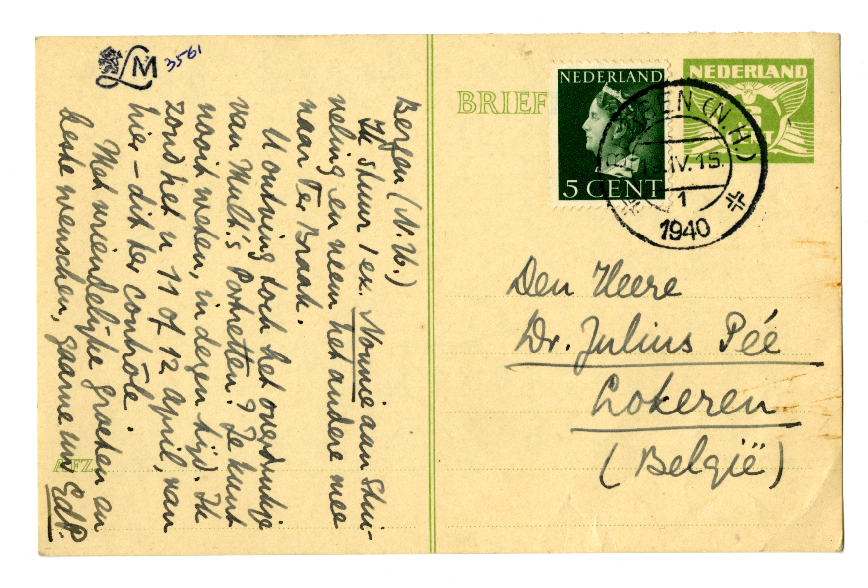 U ontving toch het overdrukje van Mult.'s Portretten? Je kunt nooit weten, in dezen tijd. Ik zond het u 11 of 12 April, van hier - dit ter contrôle.