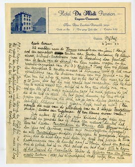 P.P.S. - Morgen komt Jany hier, uit Ascona, en blijft bij ons lunchen. Hij neemt een oude Engelschman7154 mee, die ik ook wel ken, maar ik hoop dat hij hem hier zal zien kwijt te raken zoolang.