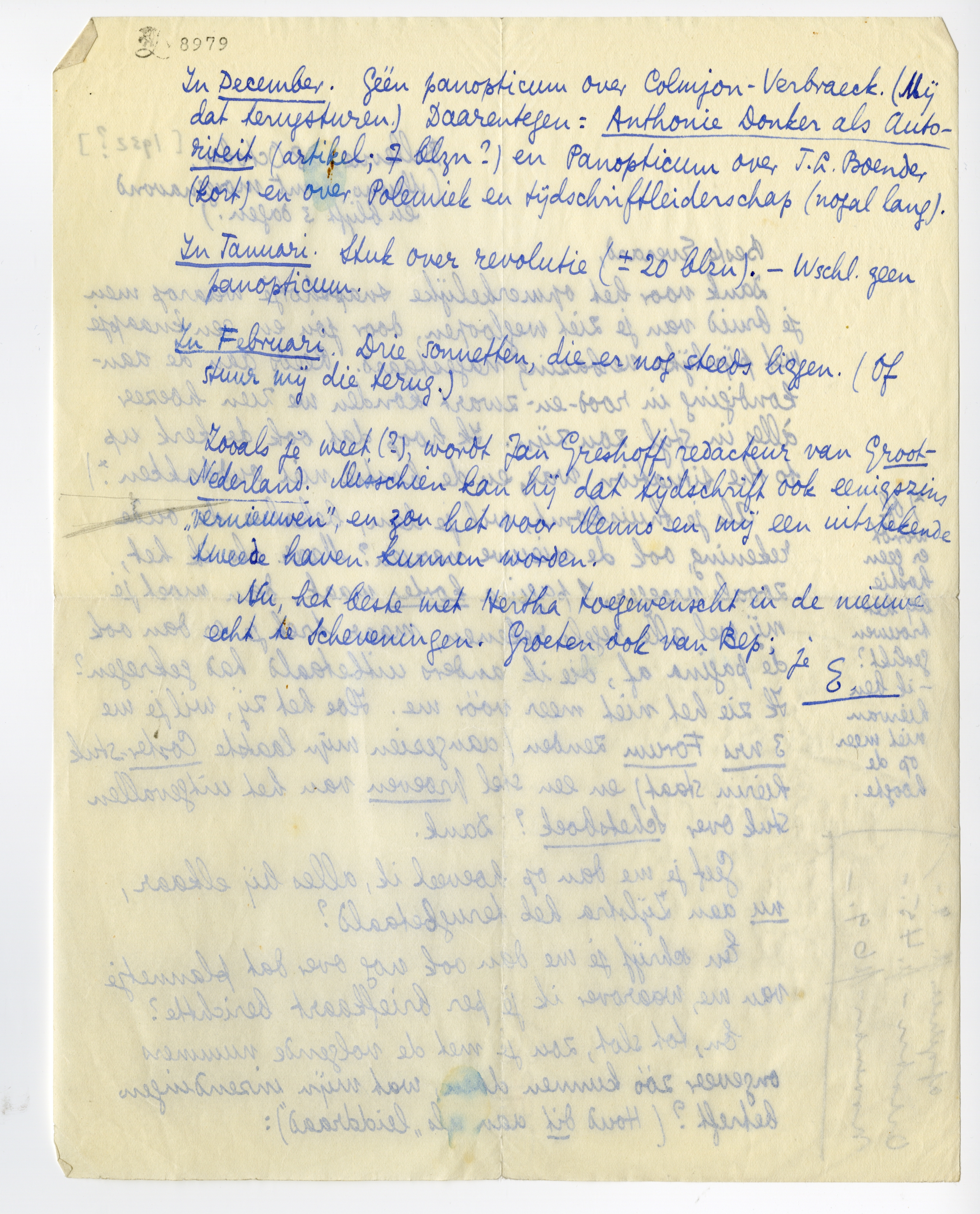 Zooals je weet(?), wordt jan Greshoff redacteur van Groot-Neder-land. Misschien kan hij dat tijdschrift ook eenigszins ‘vernieuwen’, en zou het voor Menno en mij een uitstekende tweede haven kunnen worden.