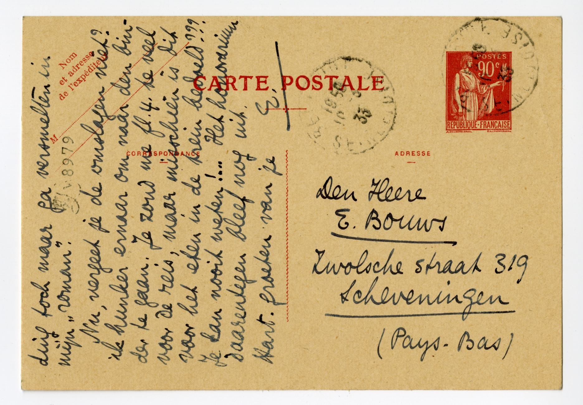 Nu, vergeet je de omslagen niet? ik hunker ernaar om naar den binder te gaan. Je zond me fl.4. te veel voor de reis, maar misschien is dit voor het eten in de trein bedoeld??? Je kan nooit weten!... Het honorarium daarentegen bleef nog uit.