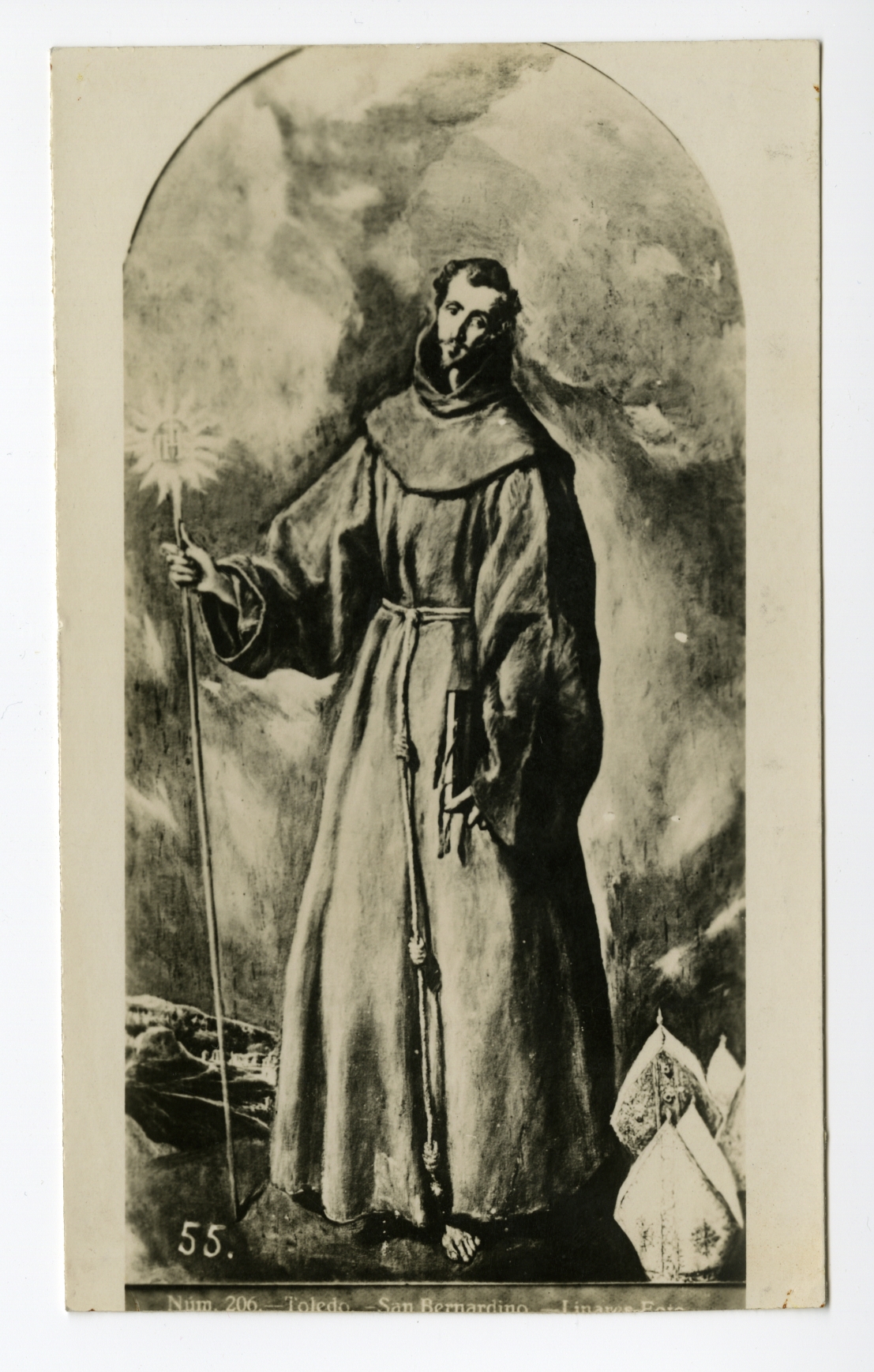 7473Prentbriefkaart: reproduktie van El Greco's schilderij ‘San Bernardino’ in het Museo del Greco te Toledo.