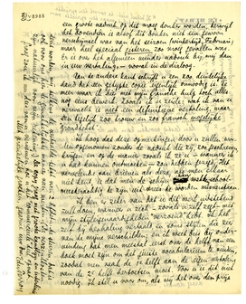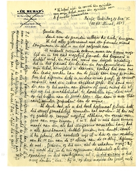 Ik ben er zeker van dat u dit werk uitstekend zult doen, wanneer u zich - zooals u zelf zegt - met mijn stijleigenaardigheden ‘verzoend’ hebt. Ik heb zelf bij herhaling vertaald, en soms stijlen die zeer van de mijne verschilden; en ik weet dus bij ondervinding dat men meestal eerst over de helft van een boek moet zijn om het juiste vocabularium te vinden, zoodat men vaak de 1e helft aan de eigen vertaling van de 2e helft hertoetsen moet. Voor u is dit niet noodig. Ik stel u voor om, als wij het over den prijs eens worden, mij telkens de vertaalde tekst van 2 hfdstn. te sturen, dat is ook voor ons hier de gemakkelijkste manier van werken. (De verzendkosten zijn natuurlijk voor mijn rekening.) De copy graag met groote kantlijn en interlinie.
