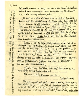 Uw brief met zorg gelezen, en overwogen wat ik u beloven kan. In geen geval kan ik mij verbinden tot het u laten uitbetalen van die 22½%. Ten 1e weet ik niet met welke uitgever ik te maken zal hebben en hoe zijn condities zullen zijn; ten 2e geloof ik werkelijk allerminst aan een groot succes; ten 3e is daar mijn holl. uitgever die, hoe dan ook, ¼ moet hebben van wat ik krijg, ten 4e moet de overige ¾ (van misschien 12%?) nog iets opbrengen aan Pia en mijzelf, die tot op dit oogenblik niets gehad hebben voor ons werk, terwijl ik, als ik het zuiver commercieel beschouw, persoonlijk dan nog een schade in te halen heb van de aan u verstrekte 6000 belgische francs. Ik ben, precies als uzelf, een ‘intellectueele proletariër’ en niet, wat ik 4 jaar geleden nog was, iemand ‘met geld achter zich’. Als u de situatie nu duidelijk vóór u neemt, dan zult u toegeven dat het een hachelijke onderneming is, waarin ik werkelijk niets garandeeren kan dan de 6000 belg. frs. die ik nu eenmaal hiervoor opzij heb gelegd.