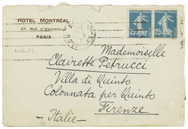 Maintenant autre chose. Comment êtes-vous à Quinto? Très occupé, très préoccupé? Et madame Petrucci? Je suis sûr qu'elle ne se donne pas un moment de repos; impossible après avoir acheté du savon et des torchons! Et je suis aussi sûr que vous ne trouverez pas le temps d'étudier vos arbres, ni de faire votre tableau de fleurs avant au moins quinze jours. Si le gendarme de la gare de Florence se connaît en ‘filles affectueuses’, vous suivrez tout ce temps le bon exemple des femmes-ménagères que loue la Bible. Mais dès ‘que la lutte sera commencé’, la lutte avec les visions et le canvas (ou le papier), qui remplacera la lutte des brosses et des casseroles, n'oubliez pas de m'écrire tout sur votre travail, comme je vous ai écrit toujours tout sur le mien.