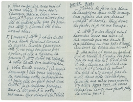 | 5. | Ma tante va retrouver sa fidèle Mlle v.d. H. et lui reproche d'avoir révélé le sombre mystère à ma mère. Mlle v.d. H. nie; vient ici pour nous dire que nous devons déclarer avoir lu tout cela dans ‘le Soir’ et s'en va. Elle me parle parce que ma mère n'était pas là. Nous revoyons ma tante: pas un mot entre nous. On ne parle plus d'Assche ni de la visite. |