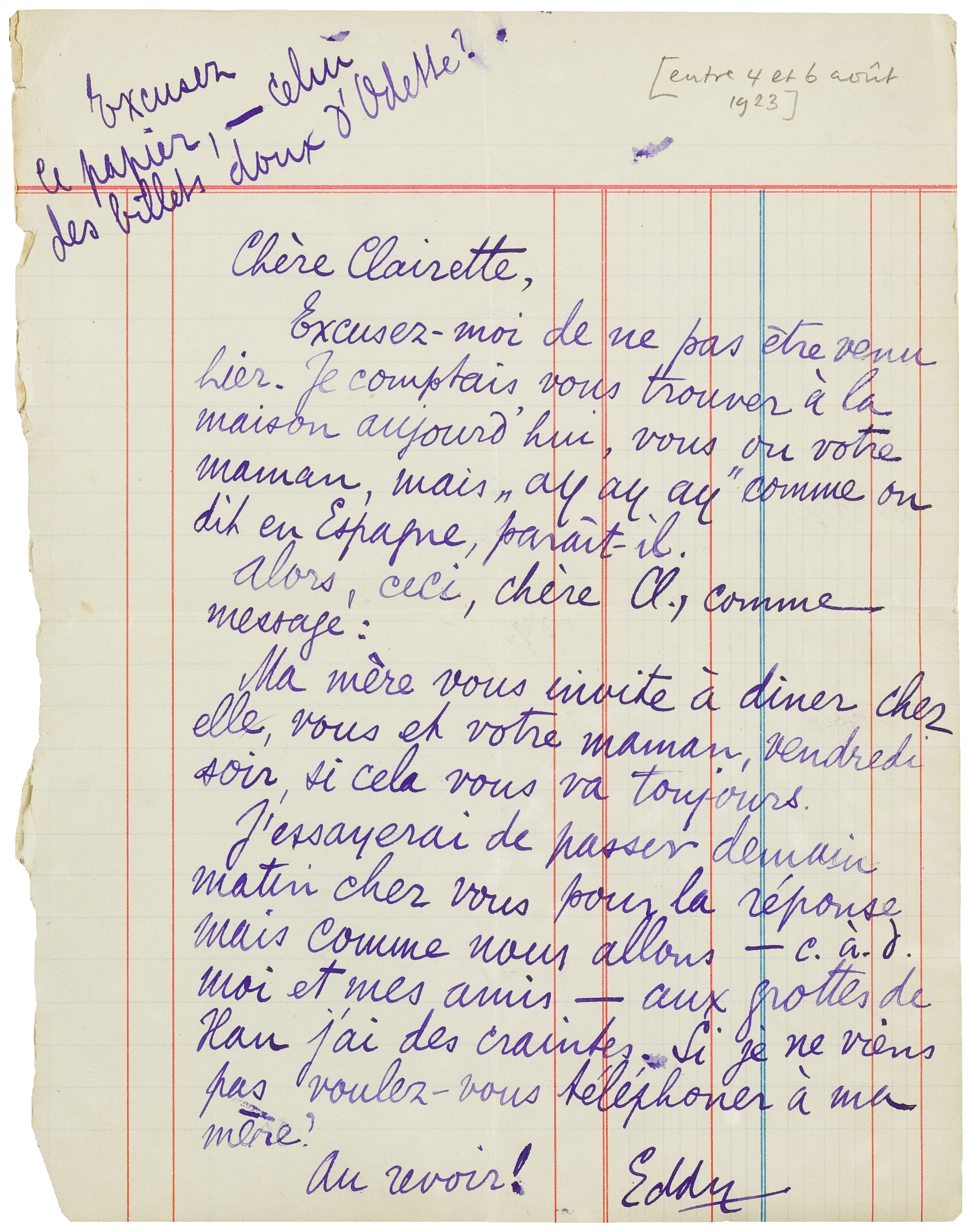 Excusez le papier, - celui des billets doux d'Odette?