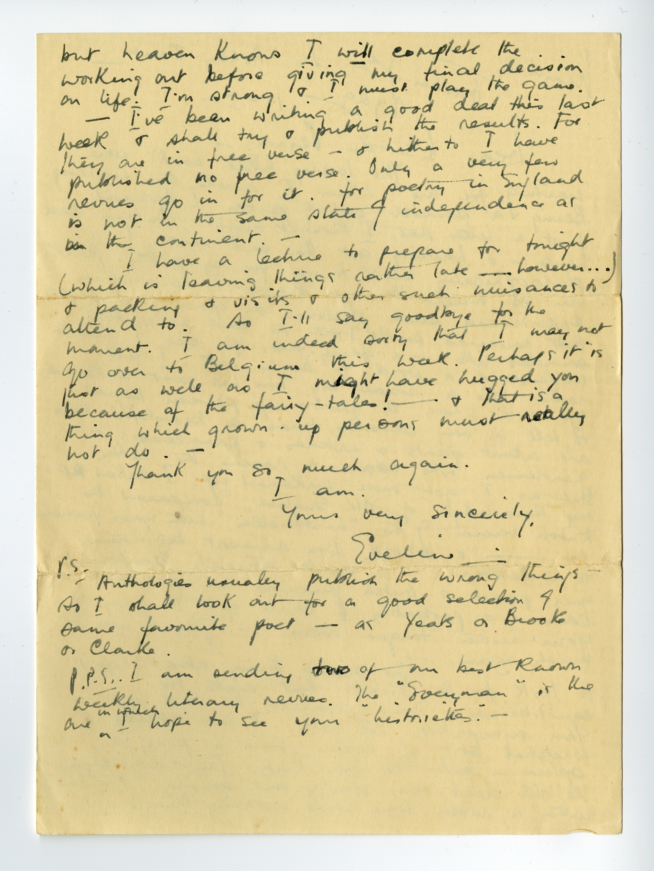 P.P.S. I am sending two of our best known weekly literary revues. The ‘Everyman’ is the one in which I hope to see your ‘historiettes’. -