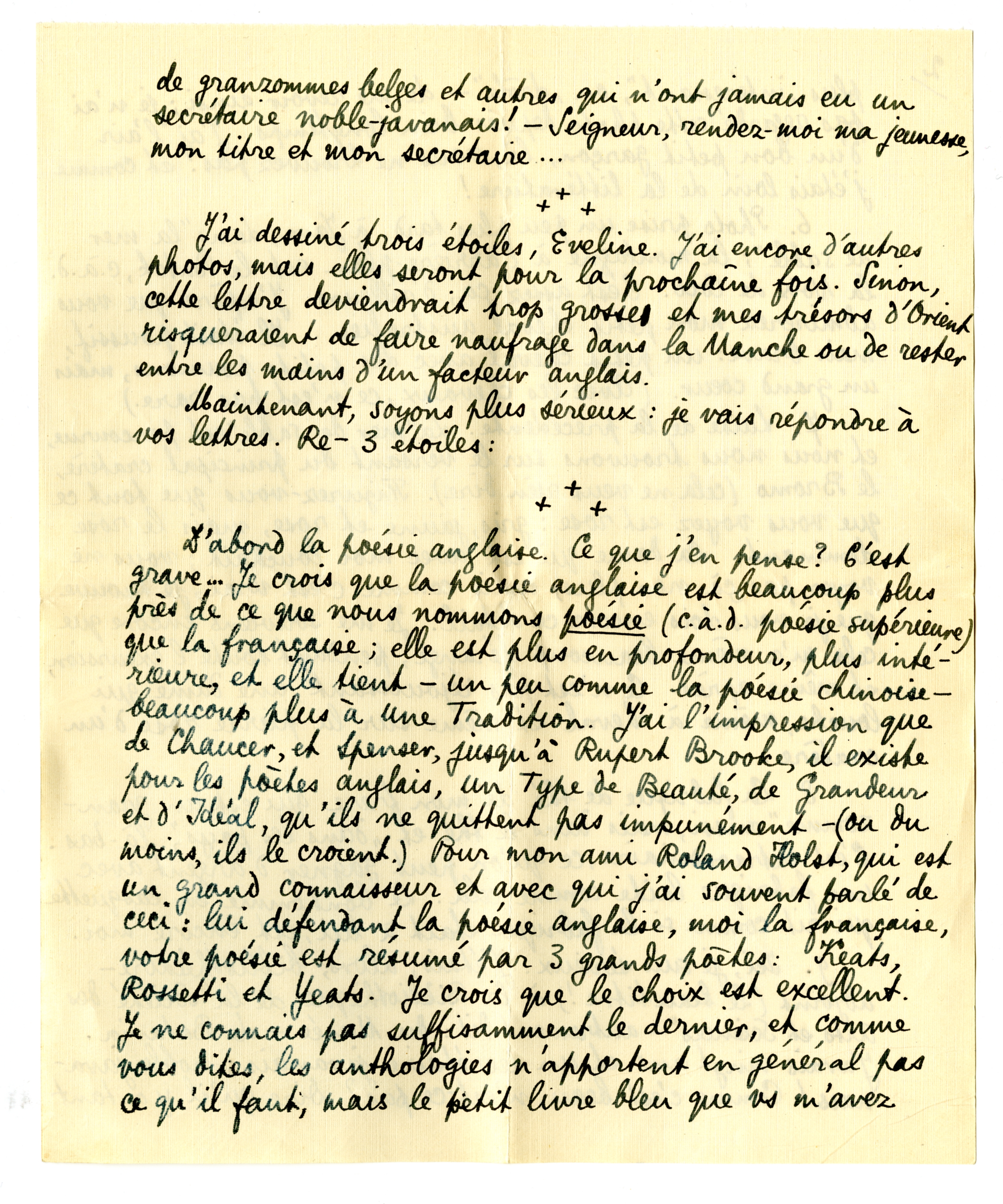 J'ai dessiné trois étoiles, Eveline. J'ai encore d'autres photos, mais elles seront pour la prochaine fois. Sinon, cette lettre deviendrait trop grosse et mes trésors d'Orient risqueraient de faire naufrage dans la Manche ou de rester entre les mains d'un facteur anglais.