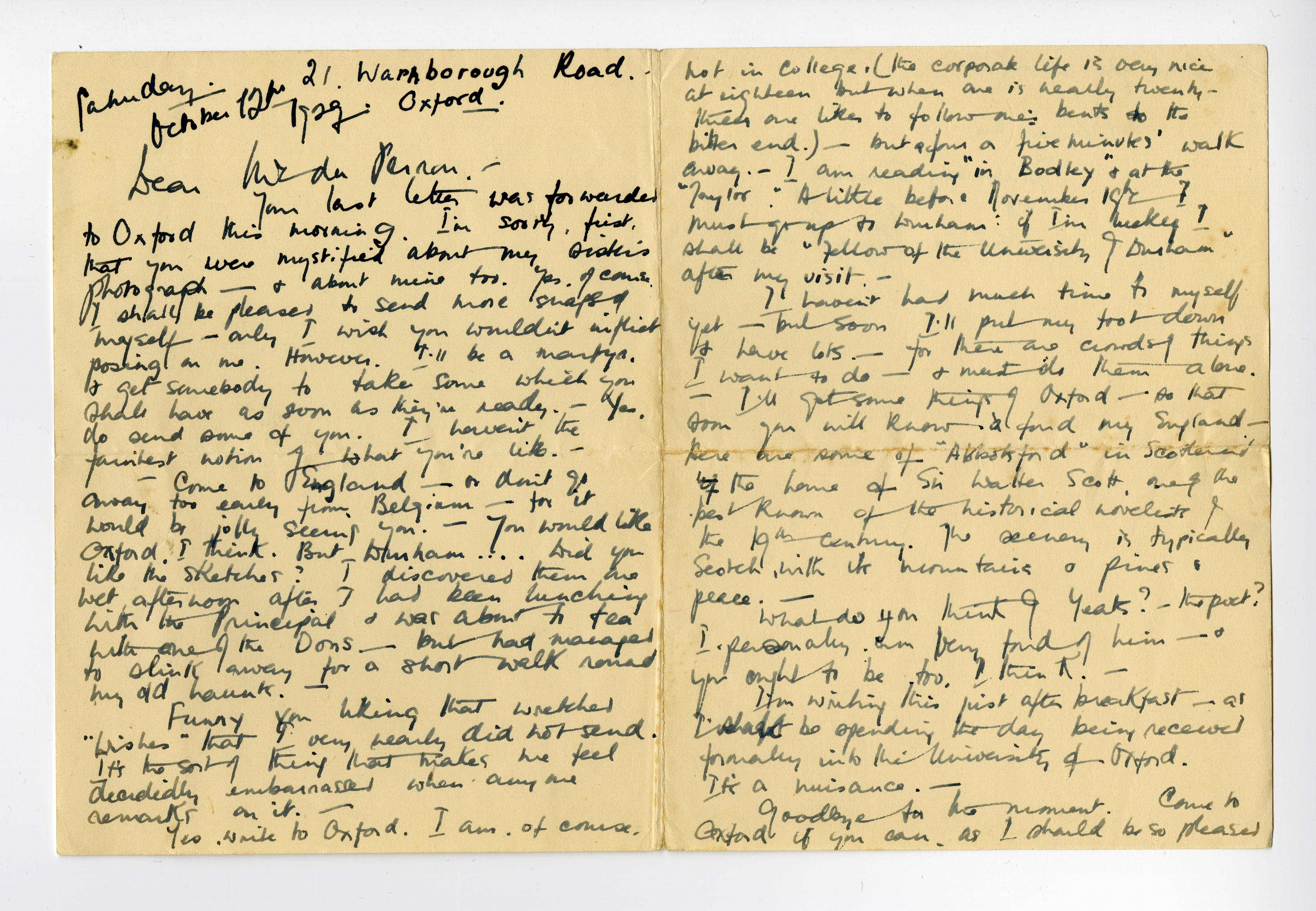 Goodbye for the moment. Come to Oxford if you can, as I should be so pleased to show you round. -