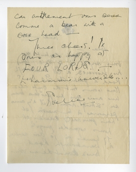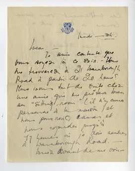Je suis contente que vous soyez là ce soir. - Vous me trouverez à 21 Warnborough Road partir de 20 heures. Nous irons tout de suite chez une amie qui me prêtera bien son ‘sitting-room’ (il n'y aura personne à la maison) et nous pourrons causer et nous regarder jusqu'à 11 heures où je dois rentrer à Warnborough Road. -