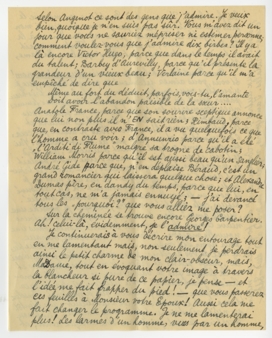Et maintenant, un peu brusquement: plus rien. Je n'ai qu'une rangée de grands hommes silencieux, quelques-uns me regardent mais nous ne nous parlons pas. C'est l'entrainement du silence sans la force de l'Action! Et penser que Bonaparte selon Elie Faure (dans un bouquin ennuyeux que vous ne devez jamais lire) était le seul qui faisait de la Poésie avec l'Action même! Il m'ennuie à la fin avec son drapeau! - Vous rendez-vouz compte que je parle de portraits et que je suis en pleine lamentation? Selon Angenot ce sont des gens que j'admire. Je veux bien, quoique je n'en suis pas sûr. Vous m'avez dit un jour que vous ne sauriez mépriser ni estimer personne, comment voulez-vouz que j'admire dix birbes? Il y a là encore Victor Hugo, parce que dans le temps il avait du talent; Barbey d'Aurevilly, parce qu'il présente la grandeur d'un vieux beau; Verlaine parce qu'il m'a empêché de dire que