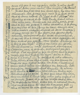 Des répétitions, ma bien chère grande Mal-Aimée, des répétitions que je veux faire posément. En ce moment je m'applique à écrire. Un calme, une domination de soi voulus. Et pourtant, je n'aimerais guère, en vous écrivant, faire ‘du style’. Même pas pour mes répétitions. Même pas pour rechercher une forme nouvelle - ou seulement un habit nouveau - pour ce que j'ai appelé mon sentiment de fond.