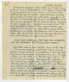 Alors, que vous dire? Que je vous aime? Me direz-vous: ‘C'est le thème; brodez, brodez.....’? Je ne crois pas. J'aimerais ne pas le croire. Surveillons-nous et soyons très simples; et (si j'ose m'exprimer ainsi!) ayons continuellement le sens des ‘valeurs’ des choses écrites. Maintenant...