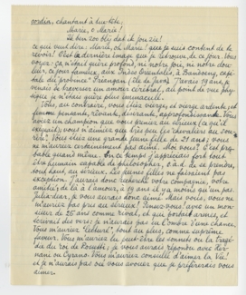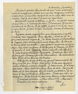 Ecrivez-moi mardi prochain - le 18 - ou plutôt mercredi peut-être - à l'adresse de Mons. P. Creixams, 57 rue du Chevalier de la Barre, Paris (XVIII). Je pars d'ici le 20, sans aucun doute. Je vous écrirai vendredi, comme d'ordinaire; de Paris.