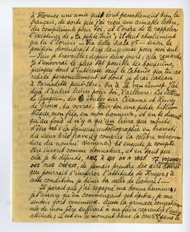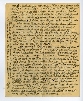 Mon vieux Jacques, tu as tort de laisser Winnie. Je ne sais pas pourquoi, c'est plutôt un sentiment - sentiments, guides les plus sûrs de nos pas -; je ne tâche même pas de me l'expliquer et du moment que tu l'aimes pas je te donnerais raison; mais si tu l'aimes, eh bien, mon galant, tu as tort de la sacrifier à quoi que ce soit. Malgré tout je ne puis trop te répéter ce credo: