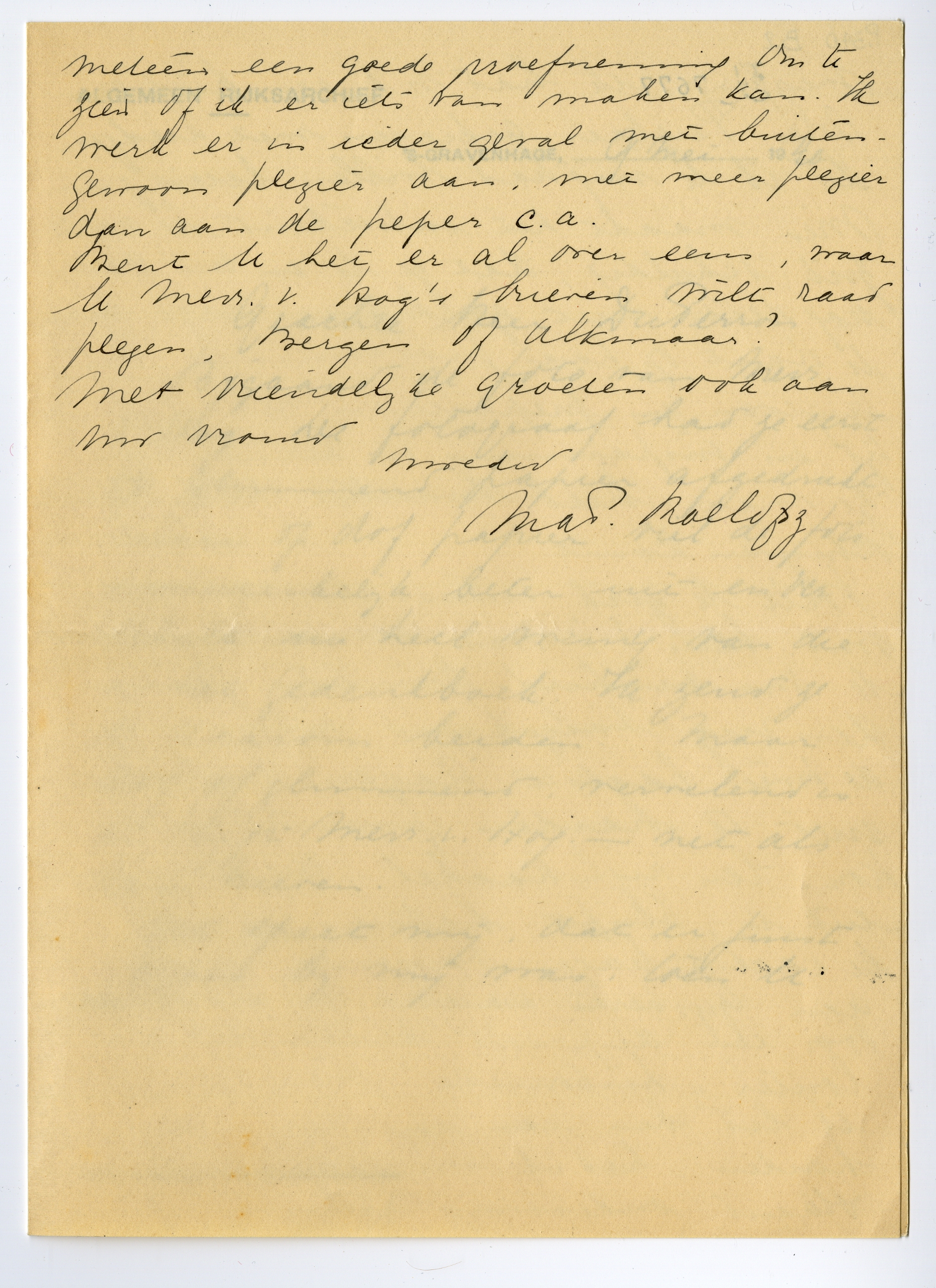 Bent U het er over eens, waar U Mevr. v. Hog’s brieven wilt raad plegen, Bergen of Alkmaar?