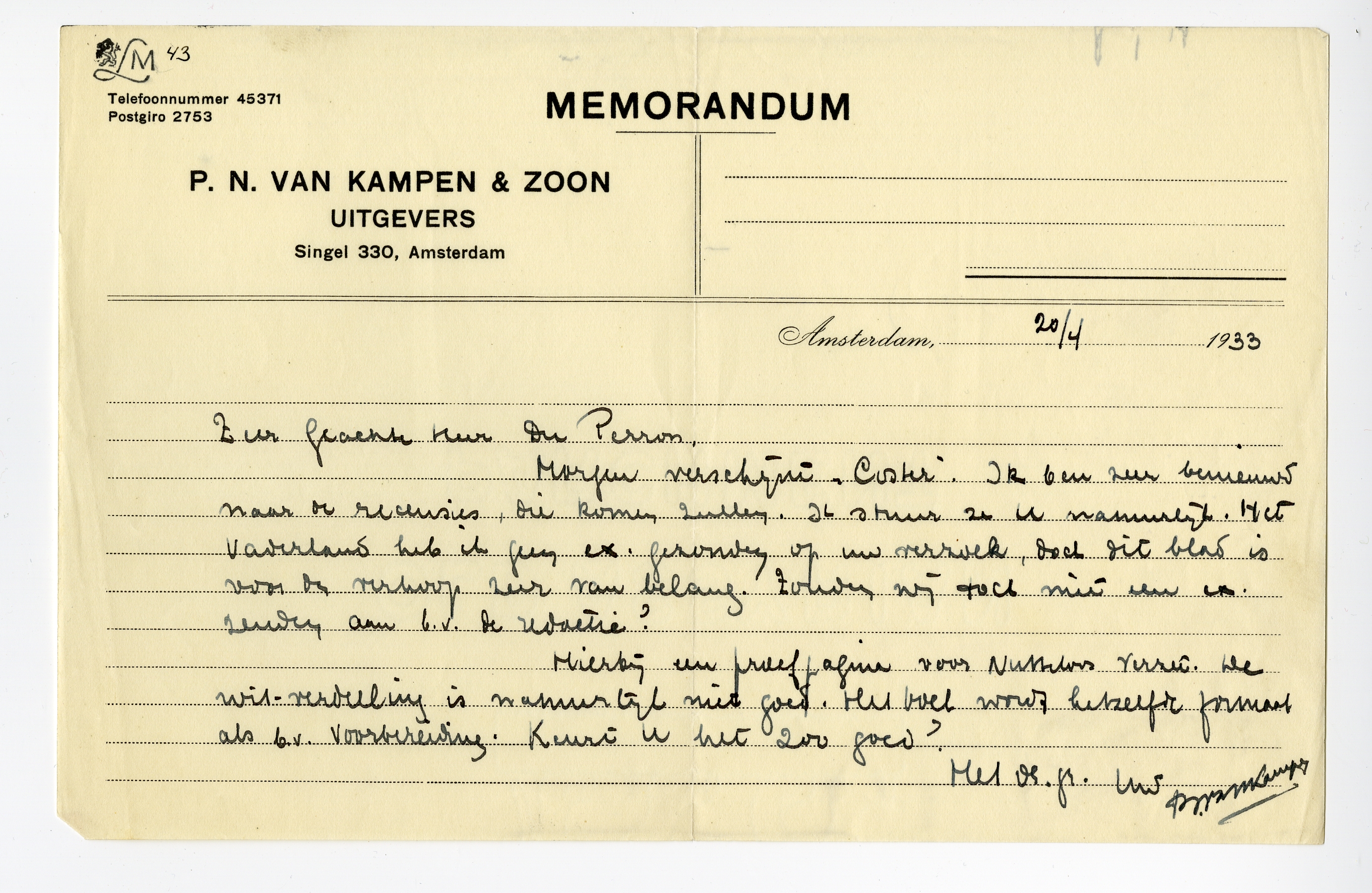 Amsterdam 20/4 1933