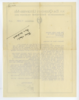 Wij hebben Uw van Haren-verhaal gelezen vóórdat Uw brief van 30 Maart j.l. in ons bezit kwam. Er doemden bezwaren, die wij van plan waren U te schrijven. Nu U zich echter van ons min of meer hebt losgemaakt, meenen wij ook vrijer tegenover U te staan en U zonder veel woorden mede te deelen, dat wij in de uitgave daarvan hoegenaamd niets zien. Wij zullen het manuscript volgens Uw verlangen aan den heer ter Braak zenden.
