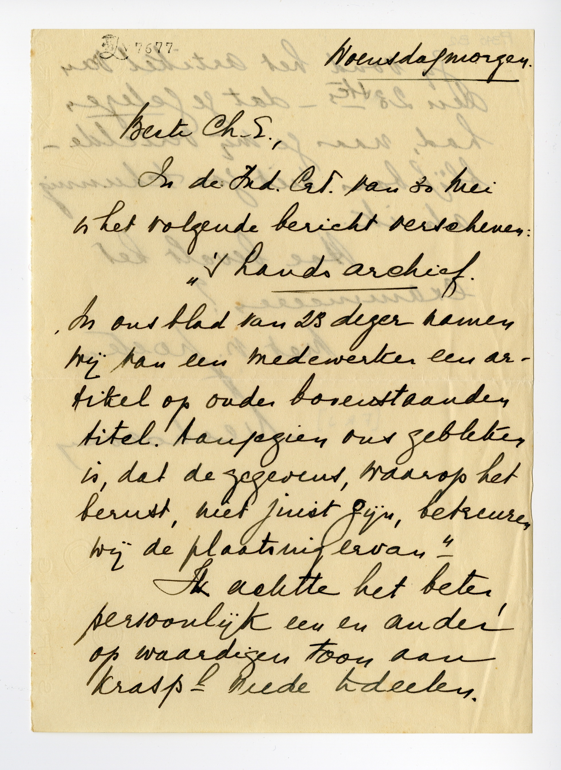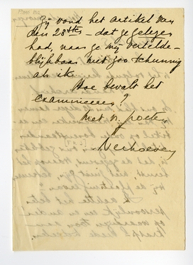 Ik achtte het beter, persoonlijk een en ander op waardigen toon aan Krasp meede te deelen. Zij vond het artikel van den 2sten – dat je gelezen had, naar je mij vertelde – blijkbaar niet zoo schunnig als ik.