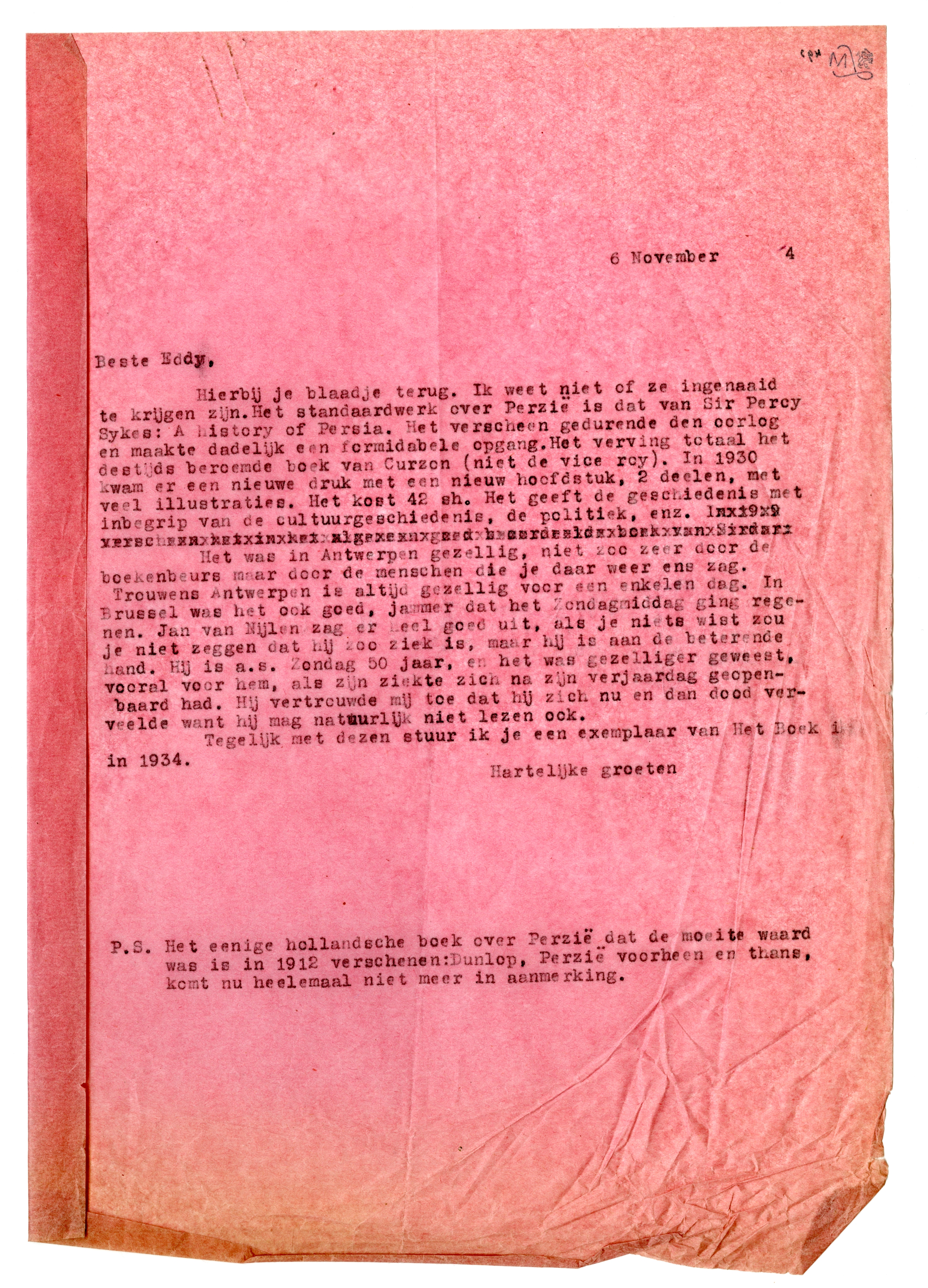 P.S. Het eenige hollandsche boek over Perzië dat de moeite waard was is in 1912 verschenen: Dunlop, Perzië voorheen en thans, komt nu heelemaal niet meer in aanmerking.