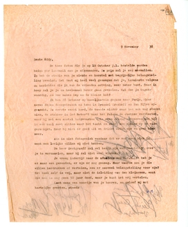 I k ben op 28 October op huwelijksreis gegaan naar Parijs, daar zeven dagen doorgebracht en toen in Brussel Greshoff en Van Nijlen opgezocht. De eerste werkte hard, de tweede minder maar kan ook nog slecht zien, de stakker is God beter’t naar het Palais de Justice verplaatst, waar hij met een aantal lotgenoten (die even weinig uitvoeren als hij) in een zaal moet zitten waar het tocht en waar men elkaar op de vingers kijkt. Maar hj ziet er goed uit en drinkt witte wijn en geen bier meer.