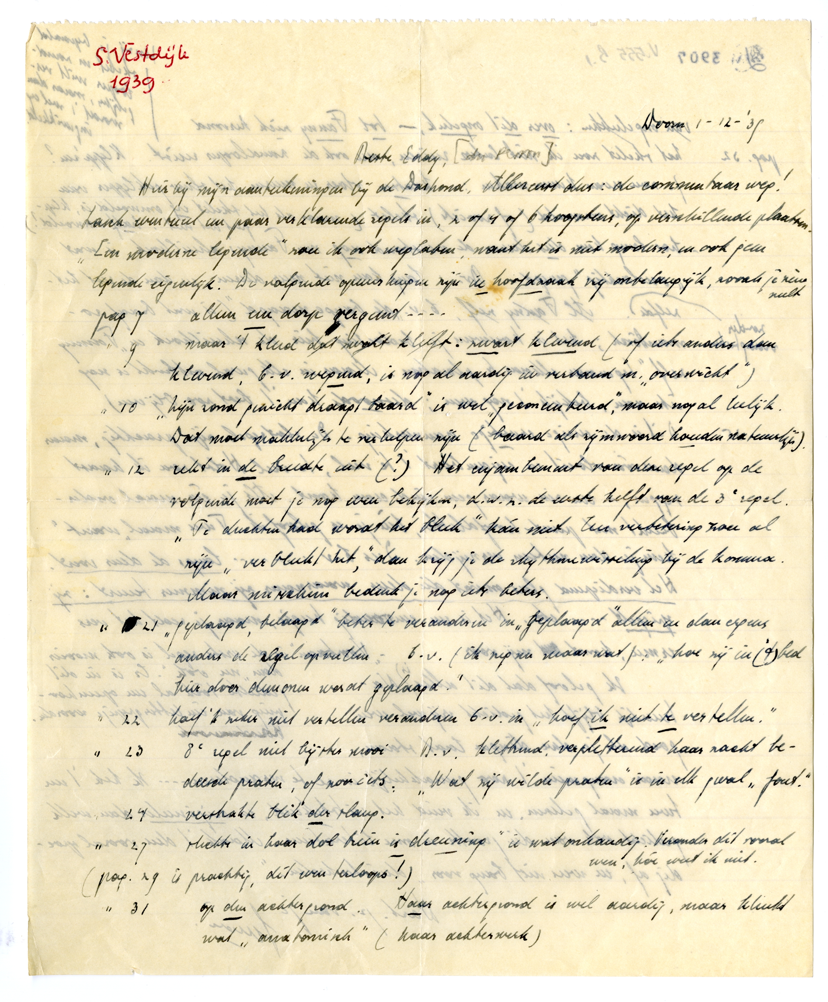 Hierbij mijn aanteekeningen bij de Dashond. Allereerst dus: de commentaar weg! Lasch eventueel een paar verklarende regels in, 2 of 4 of 6 hoogstens, op verschillende plaatsen. ‘Een moderne legende’ zou ik weglaten, want het is niet modern, en ook geen legende eigenlijk. De volgende opmerkingen zijn in hoofdzaak vrij onbelangrijk, zooals je zien zult.