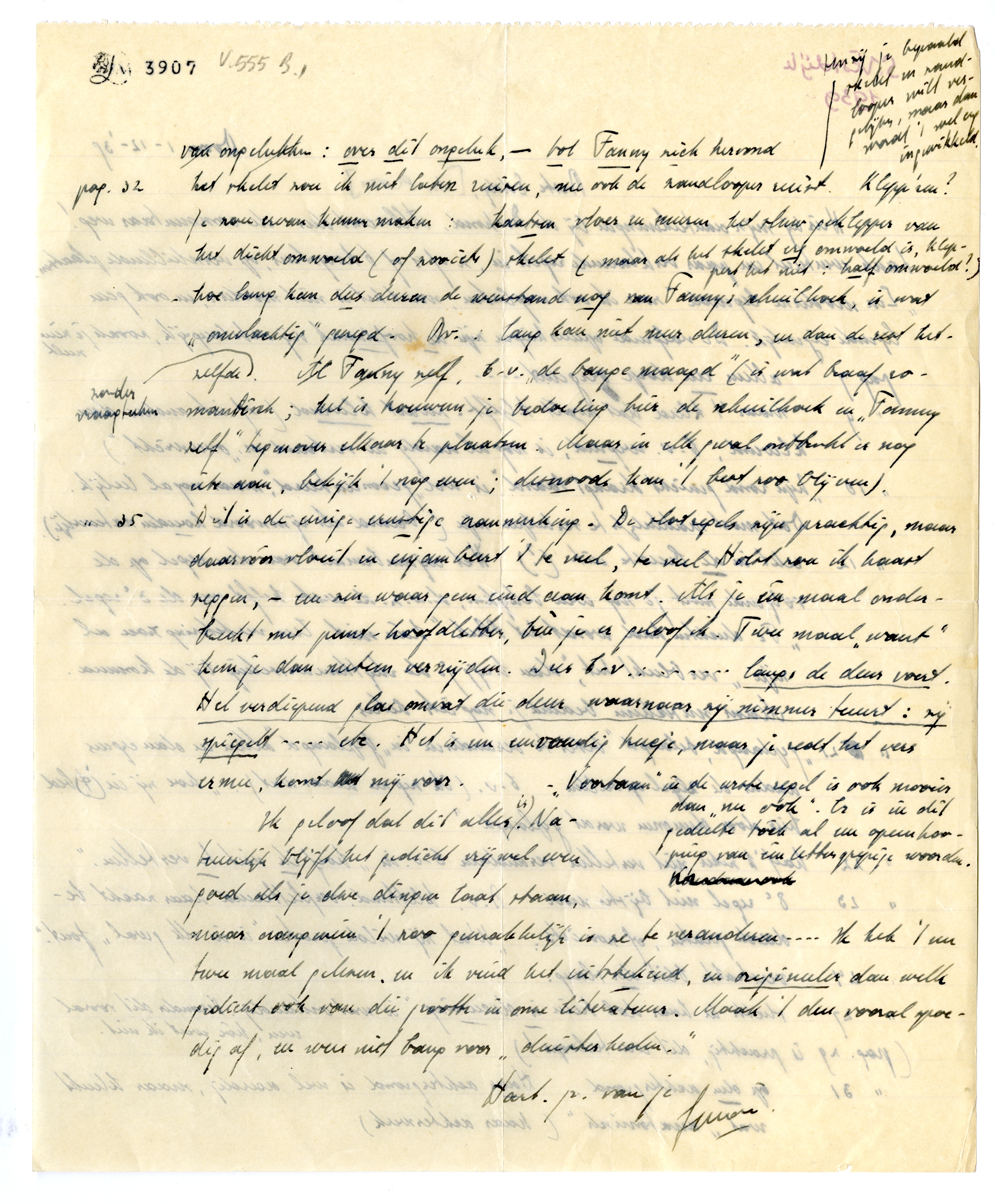 Ik geloof dat dit alles is. Natuurlijk blijft het gedicht vrijwel even goed als je [deze] dingen laat staan, maar aangezien ’t zoo gemakkelijk is ze te veranderen... Ik heb ’t nu twee maal gelezen, en ik vind het uitstekend, en origineeler dan welk gedicht ook van die grootte in onze literatuur. Maak ’t dus vooral spoedig af, en wees niet bang voor ‘duisterheden’.