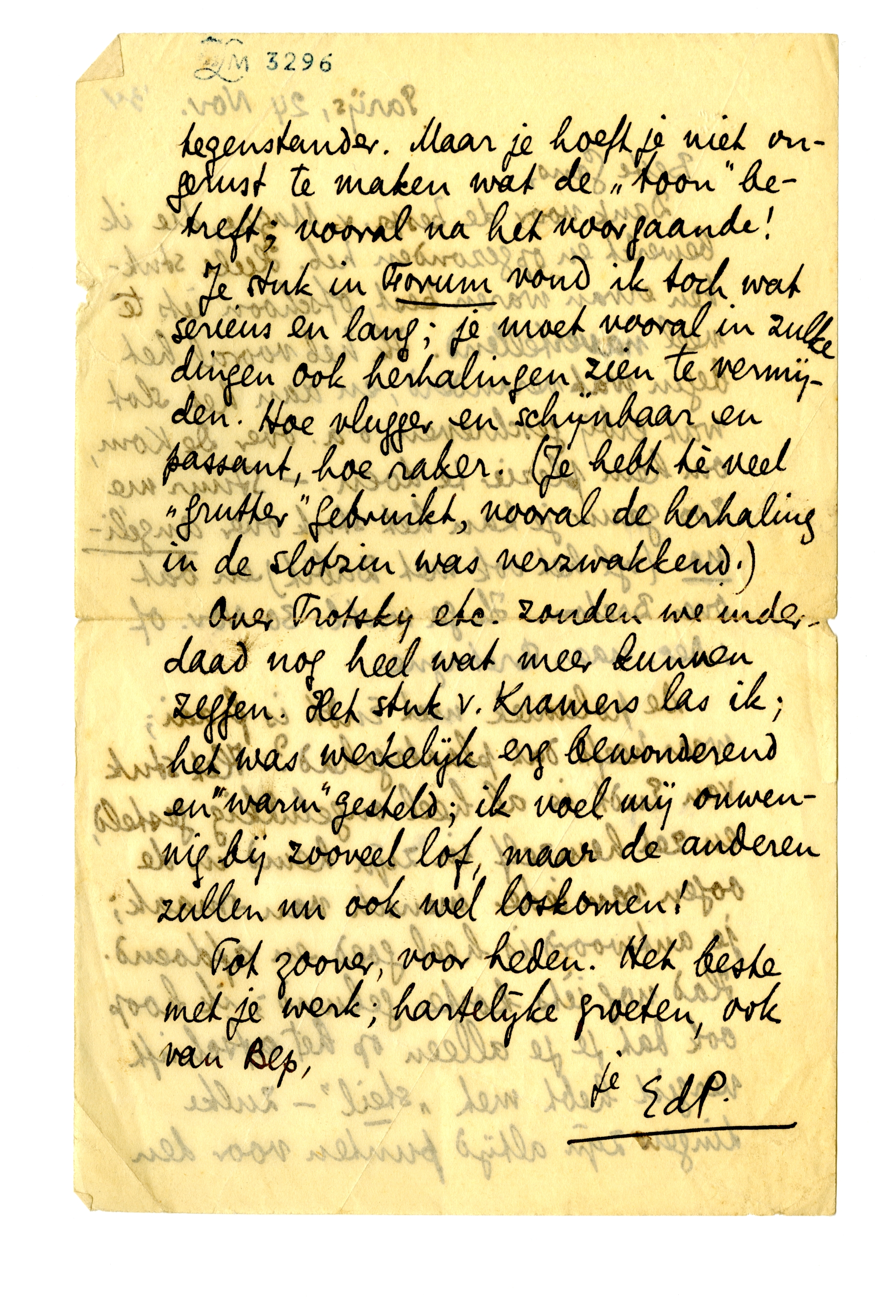 Over Trotsky etc. zouden we inderdaad nog heel wat meer kunnen zeggen. Het stuk v. Kramers111 las ik; het was werkelijk even bewonderend en ‘warm’ gesteld; ik voel mij onwennig bij zooveel lof, maar de anderen zullen nu ook wel loskomen!